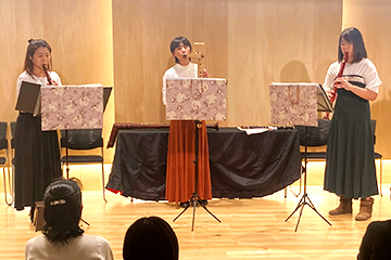 - 初めてご参加いただいた団体様。お揃いの素敵な衣装で、息ぴったりの演奏を披露していただきました。3名様とは思えない奥行きのある美しい演奏でした。
