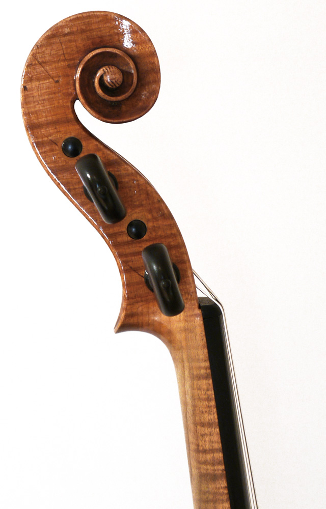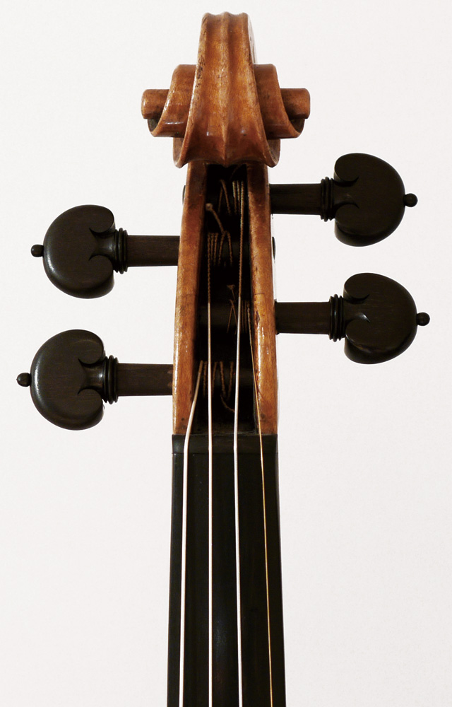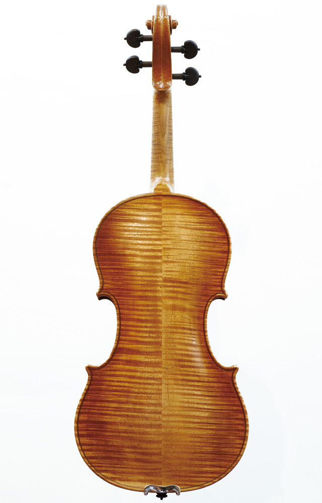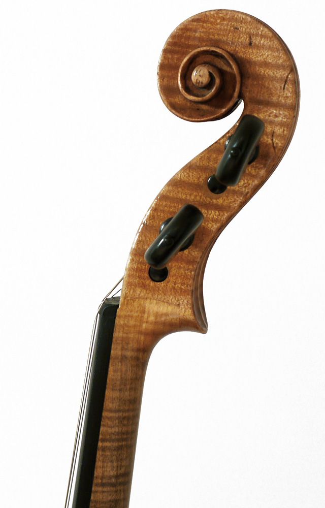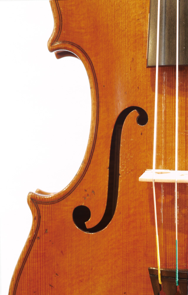 材料が良質で経年が進んで乾いており、反応良く鳴る楽器です。アマティモデルで製作された楽器で、アーチの高さがあって細部までよく彫り込まれており、音色が良いので室内楽にも対応できます。