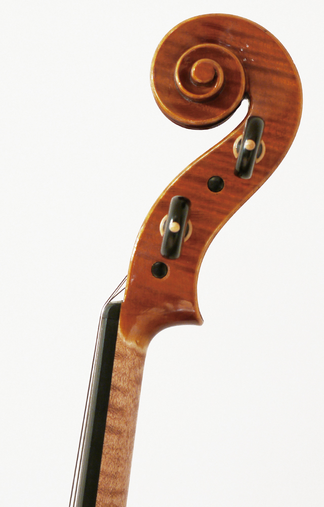クレモナのベテラン製作家、Esposti氏のストラディヴァリモデルのヴィオラです。日本人にとって扱いやすい405mmというサイズで、イタリアンらしい明るい音色を持っています。飽きのこない、自ら音色を作り込める楽しみに満ちた楽器で、弾き込むごとに味わいが増すイタリアンの素晴らしさが詰まった作品です。