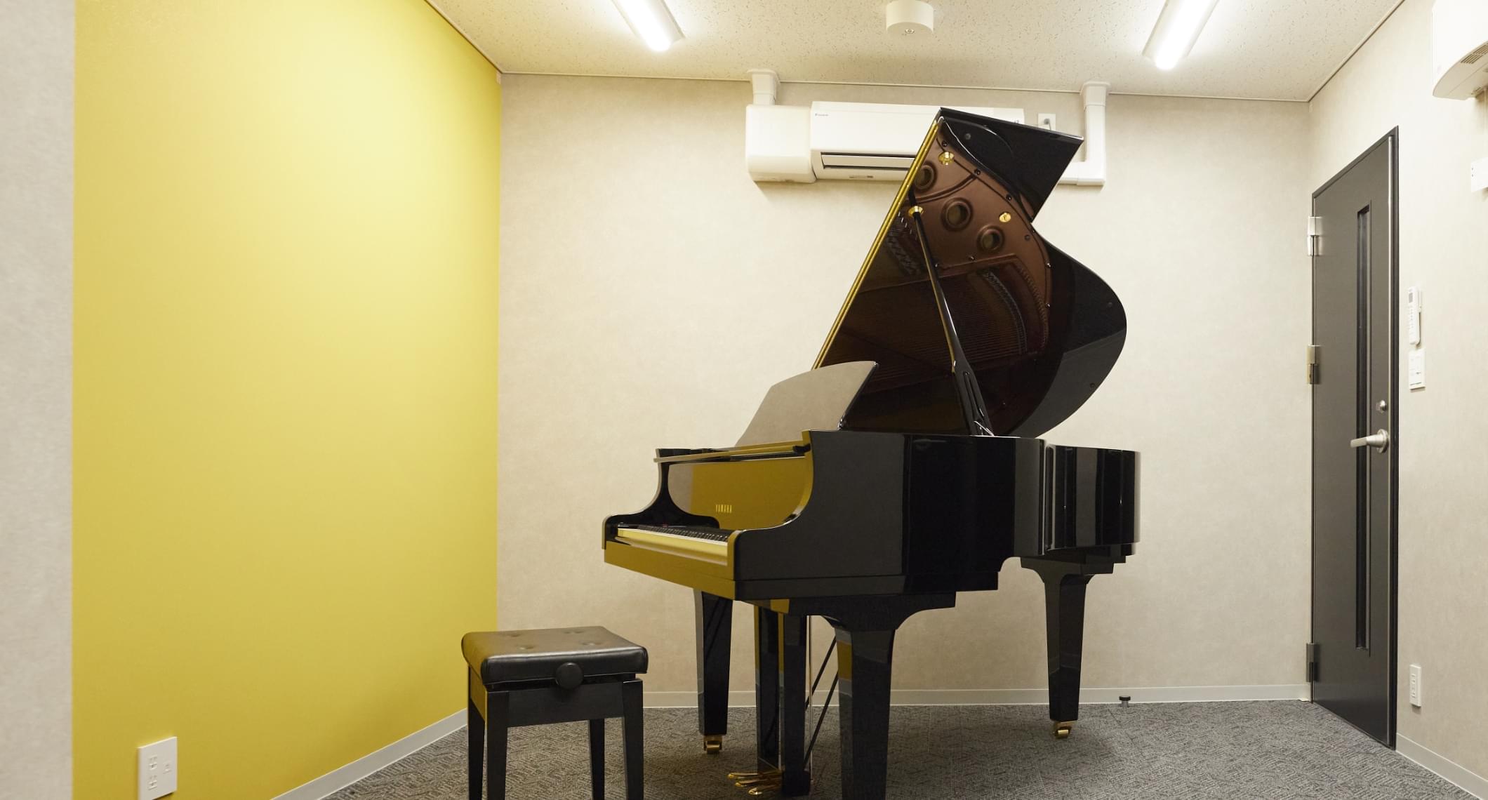 室内楽スタジオヤマハのグランドピアノでのソロ練習や管楽器、ヴォーカル、ピアノ五重奏程度の編成の室内楽の練習にも対応するレッスンルーム。定期的な練習スタジオとしてもご活用ください。