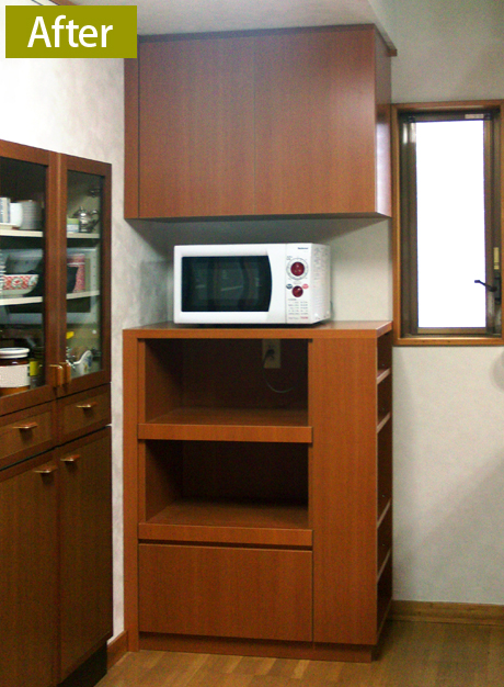既製品の家電収納をお使いでしたが、ご自分の家事動線に合っておらず、なんとなく使い勝手の悪さを感じていたY様。