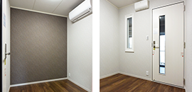 - 来客時などに気にされる方が多い、ペットの臭い対策には、脱臭機能をもつ壁材がおすすめ。爪とぎの対策にもなります。