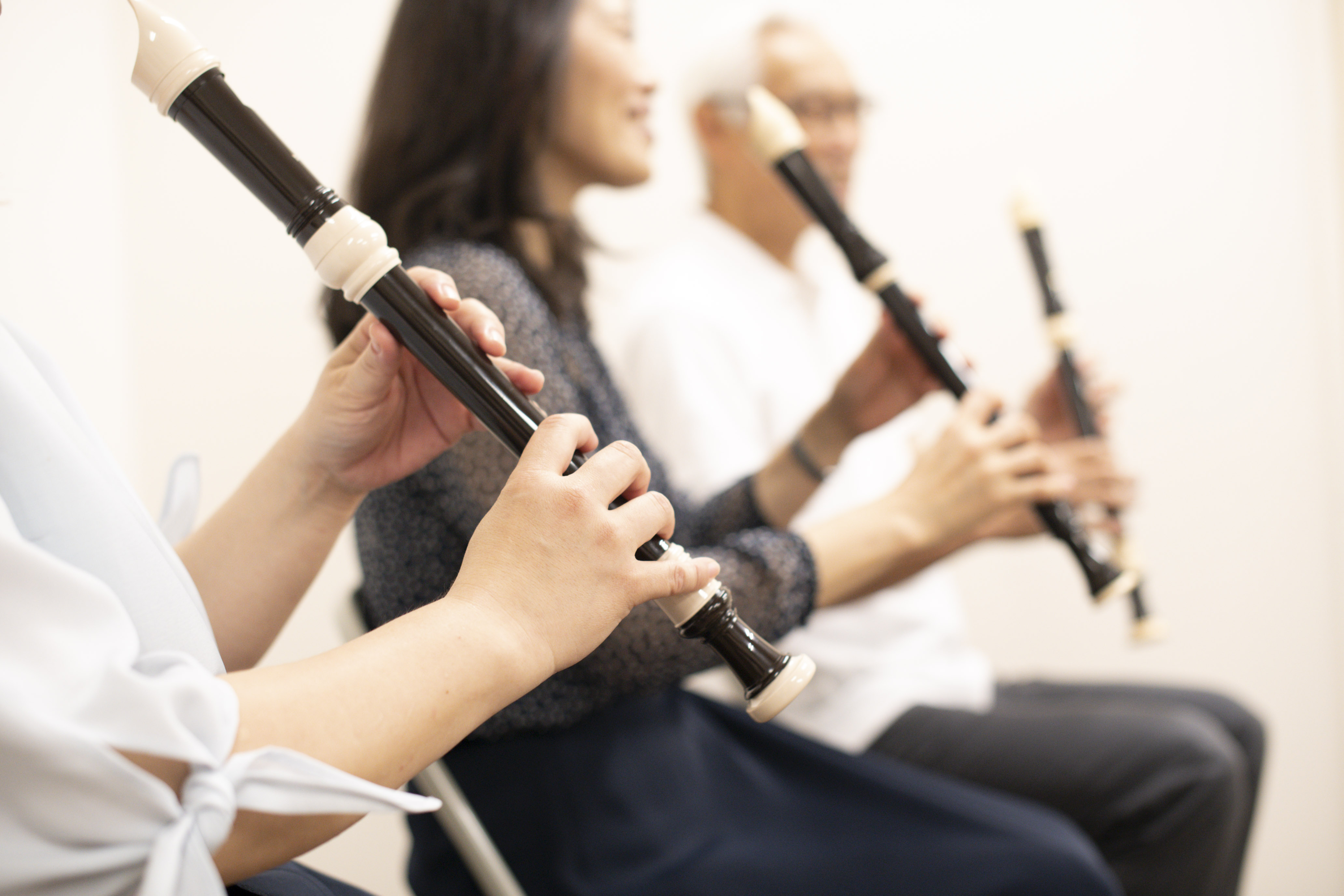 そっと息を吹き込むだけで簡単に音が出せるリコーダー。 指使いや呼吸法を意識することで脳や肺の活性化にもつながります。 認知症予防などの健康効果にも期待できます。 初めての方も、経験者も大歓迎!月2回の無理なく通えるコースです♪