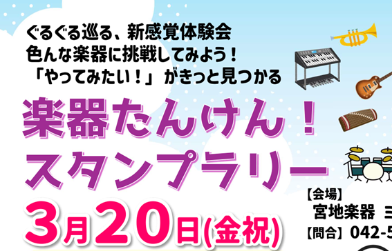 期間中に気になるコースで2回レッスン!お申込みの方には練習室レンタル30分無料チケット プレゼント!さらにご入会の方はご入会金が3,000円OFF!(65歳以上の方は半額) 新しい趣味、探してみませんか?【申込期間12/1~1/31】 ミュージックスクエア立川おすすめのコースはこちらから!