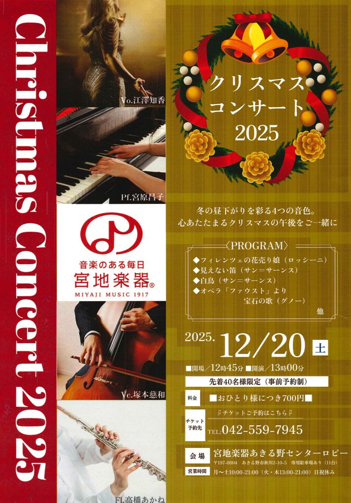 \ 宮地楽器あきる野センター・クリスマスコンサートのお知らせです♫ /