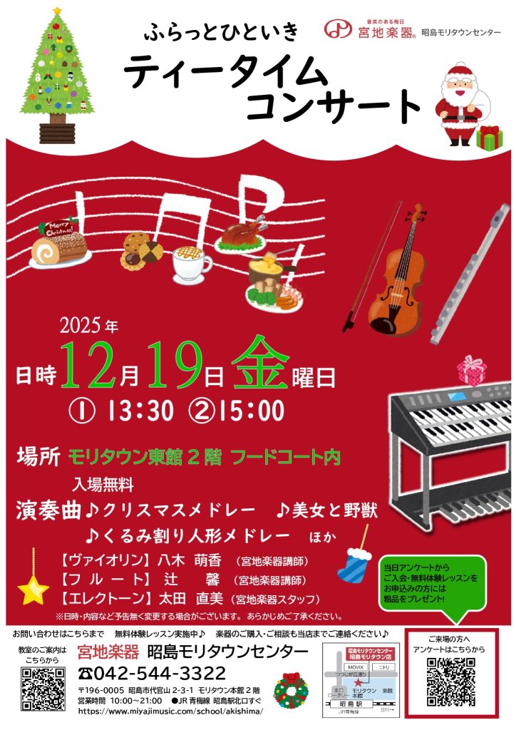 ご好評につき【ティータイムコンサート】を12月も開催いたします!