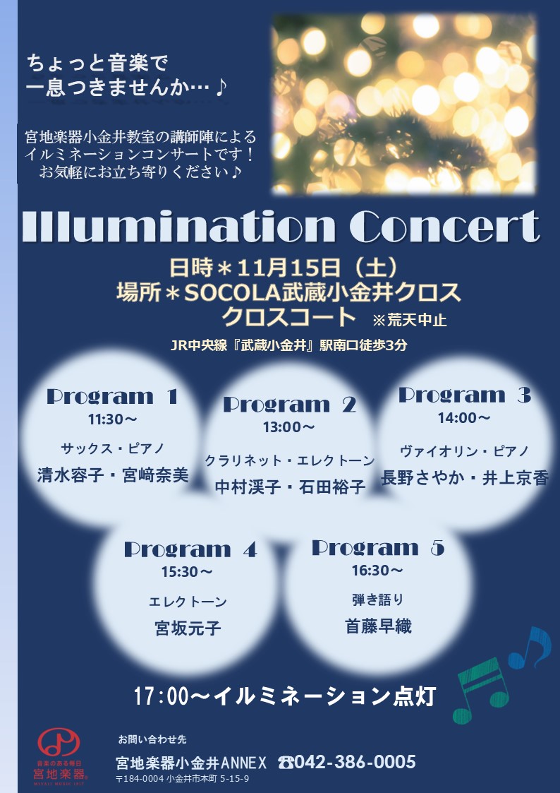 11/15(土)SOCOLA武蔵小金井クロスでイルミネーションコンサート開催☆