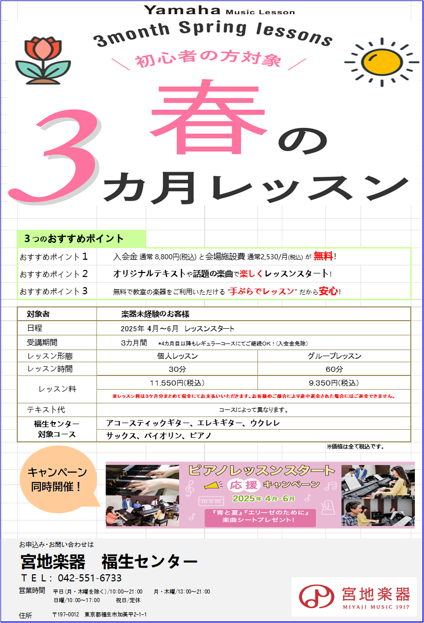 そんな方にオススメなのがヤマハの「春の3ヵ月レッスン」です。