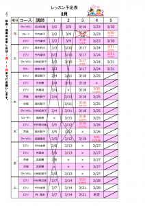【休講延長】レッスン再開のお知らせ・3月のレッスン予定表