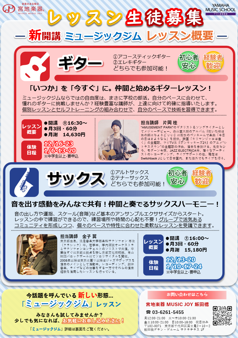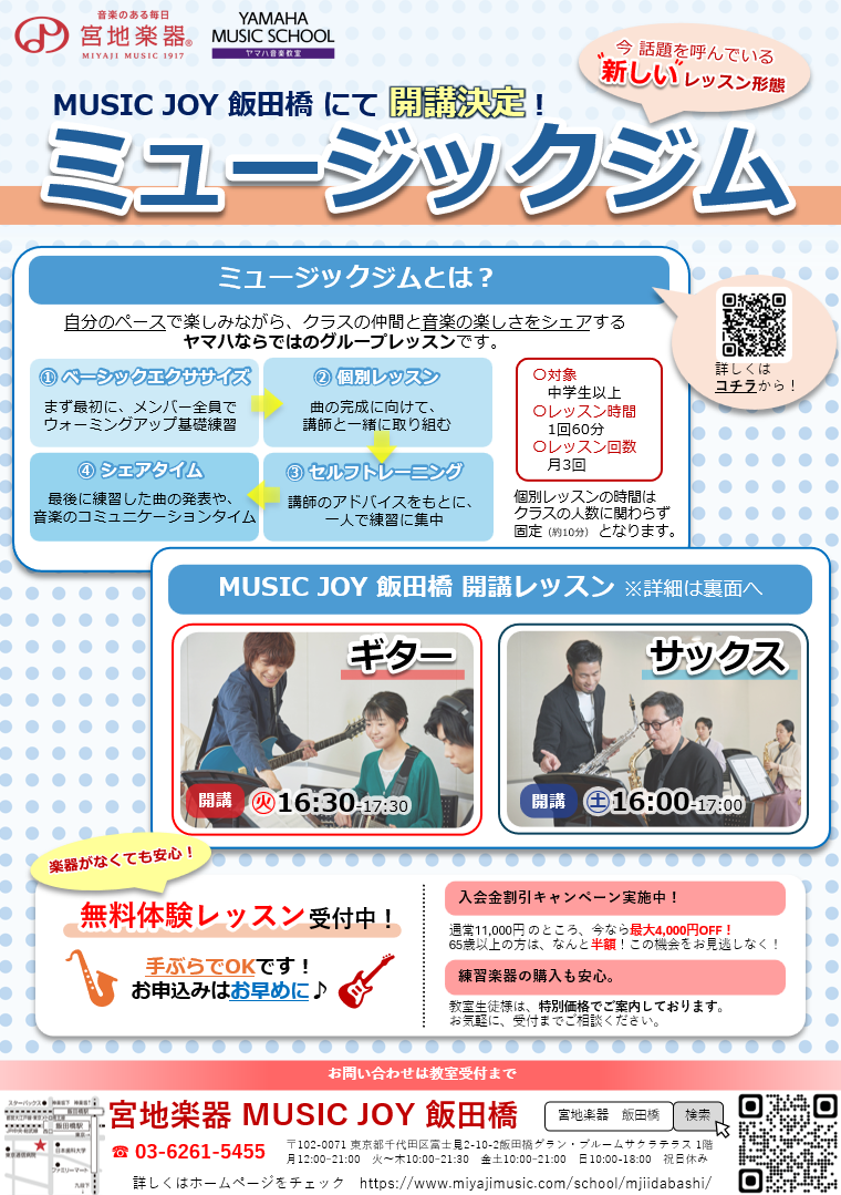 こちら MUSIC JOY 飯田橋 教室でも開講いたします!!