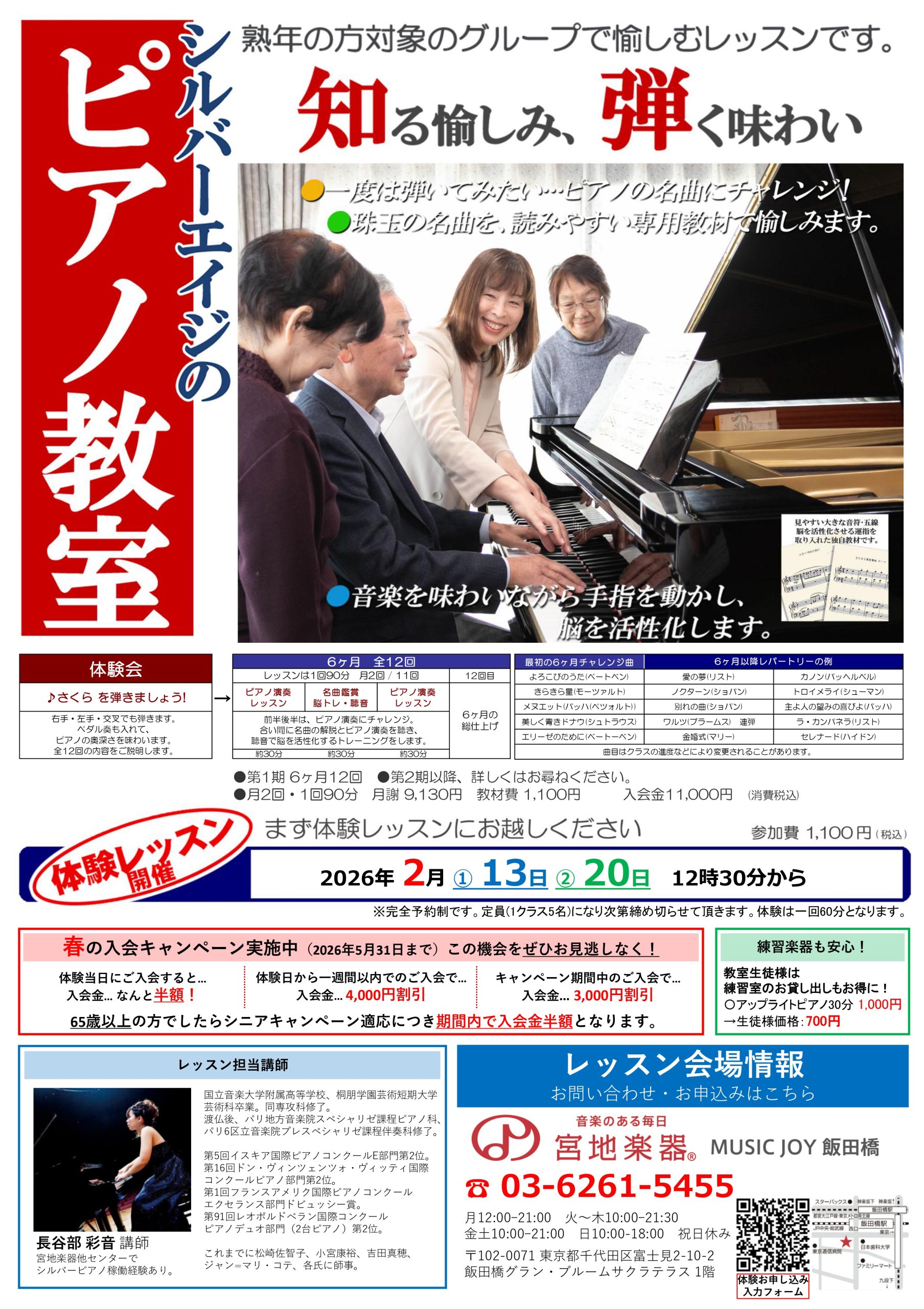 各地で開講しているレッスン、この春、宮地楽器 MUSIC JOY 飯田橋 にて新規開講いたします!