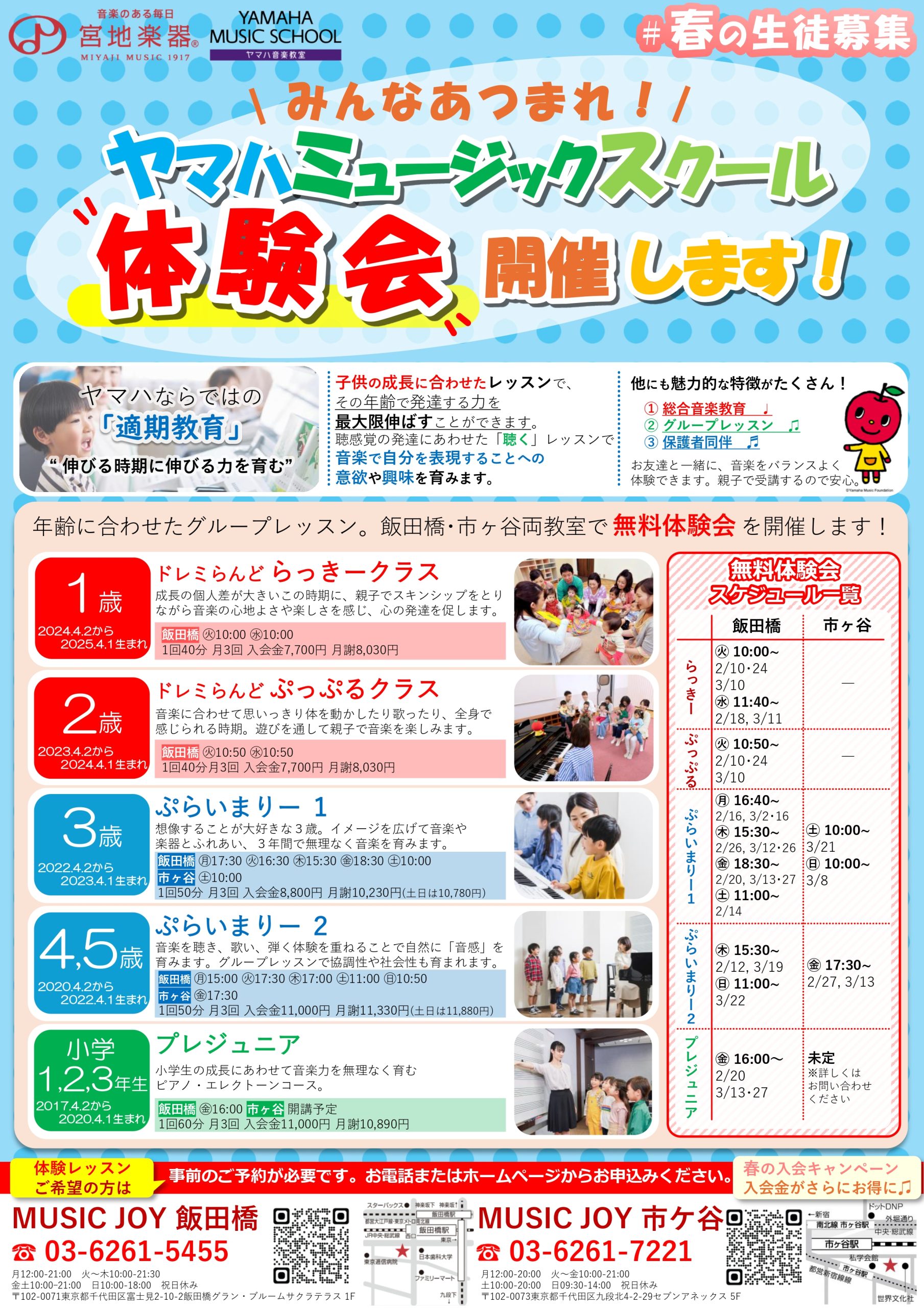 【新年少向け】ヤマハ音楽教室 ぷらいまりー① 体験会開催します!