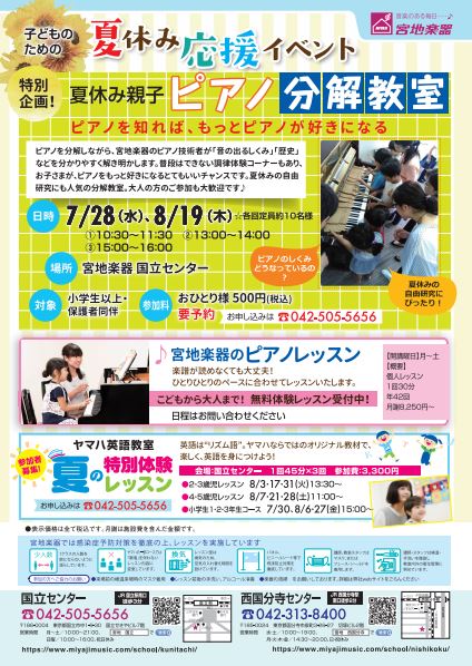 宮地楽器国立センターでは夏休み応援しますイベントとして、夏休み親子ピアノ分解教室を開催しました!