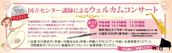 ウエルカムコンサートを開催します♪