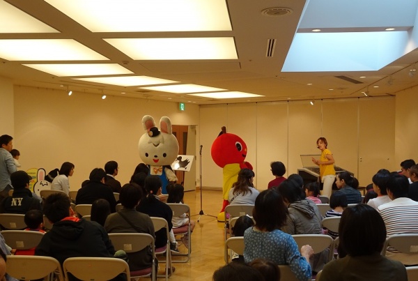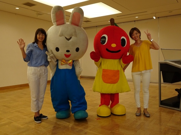 お姉さんの歌にあわせて、ぷっぷるちゃんとホッピーくんがダンス♪