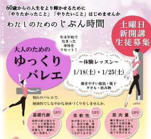 【レッスン】大人バレエコース好評につき土曜日に新開講です!