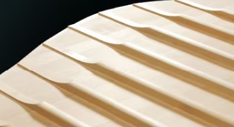 響板はピアノの響きの源であり「クラウン」と呼ばれる美しい湾曲構造を持っています。