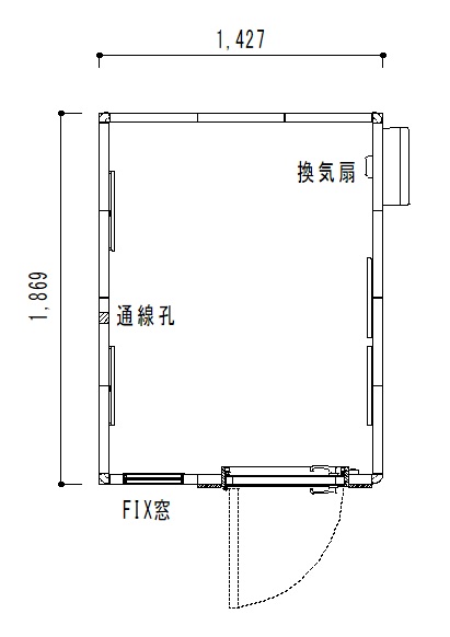 床(カーペット新品)、標準床、ドア左吊り元、FIX窓付 ※簡易組立